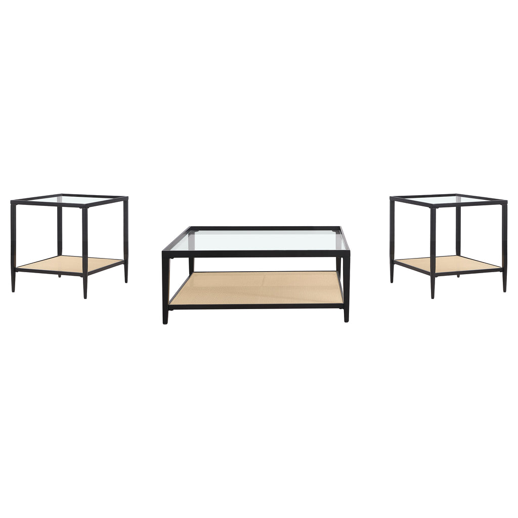 This coffee table set combines modern design with functional versatility for your living room. Featuring black powder-coated metal frames, these tables boast a sleek, minimalist look. Clear tempered glass tops add an elegant and open feel, while woven polyethylene (PE) rattan shelves provide texture and convenient storage options. Perfect as a cohesive occasional table set, this design effortlessly blends natural and contemporary elements to elevate your space with style and practicality. Key Features: • Coffee table set with sleek black powder-coated metal frames for durability • Clear tempered glass tops provide a refined, open, and spacious look • Woven polyethylene (PE) rattan shelves add texture and practical storage • Perfectly blends modern aesthetics with natural design elements • Versatile tables ideal for a cohesive and functional living room setup • Enhances your space with a stylish and practical furniture combination