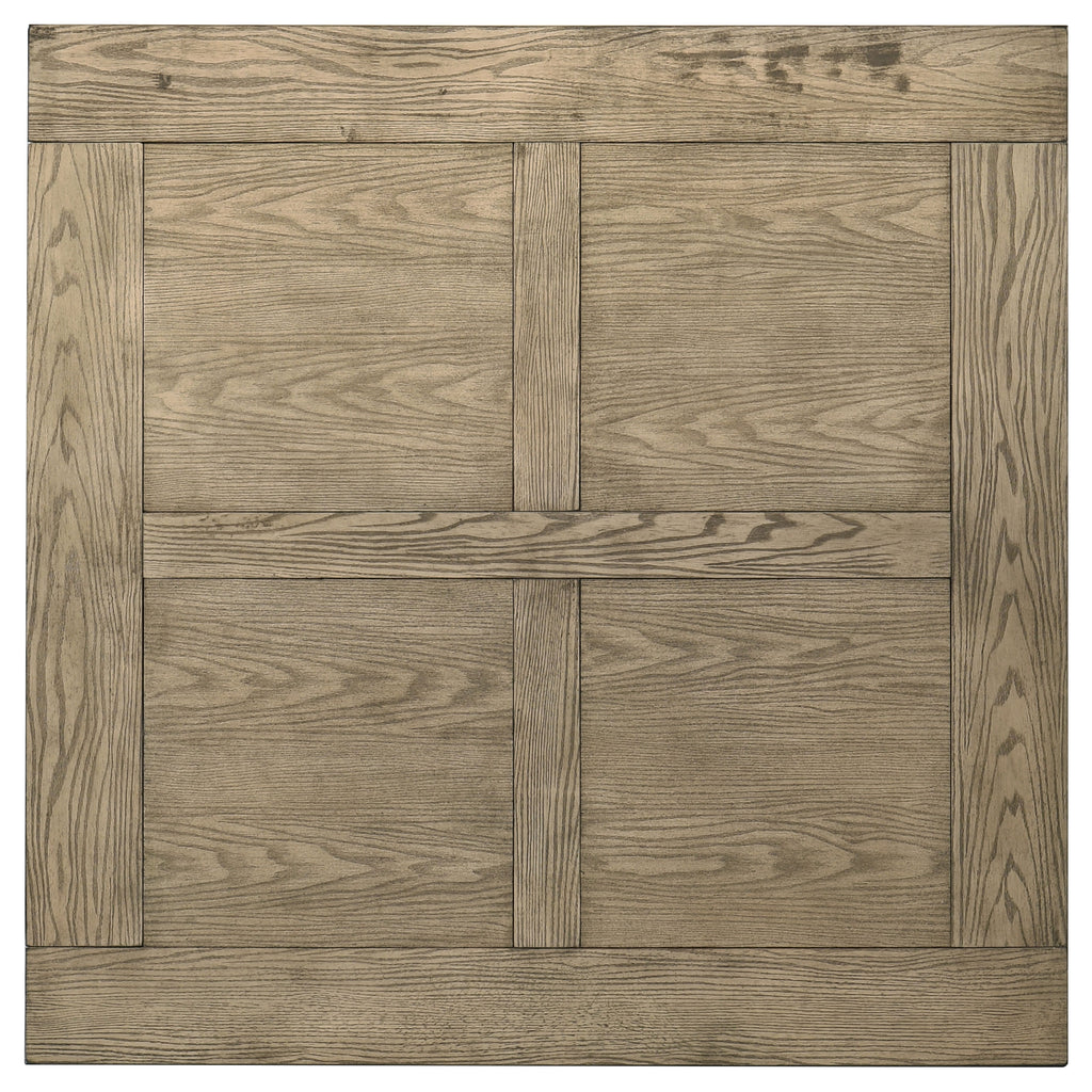 Blending rustic soul with intimate scale, this five-piece counter height set turns every meal into a gathering. A square table anchors the group with bold legs and vineyard oak grain, while four ladder-back chairs cradle comfort with their sculpted wood seats. Built from solid rubberwood, its raised format creates a welcoming rhythm for everyday dining in smaller spaces filled with warmth and connection. Key Features: • Five-piece dining set with square table and four matching rustic chairs • Vineyard oak finish draws out wood grain for added warmth and character • Counter height design encourages casual dining and comfortable posture • Chairs feature tall ladder backs and contoured wooden seating • Built from solid rubberwood for durability and lasting use • Ideal for smaller dining spaces, kitchen corners, or compact layouts