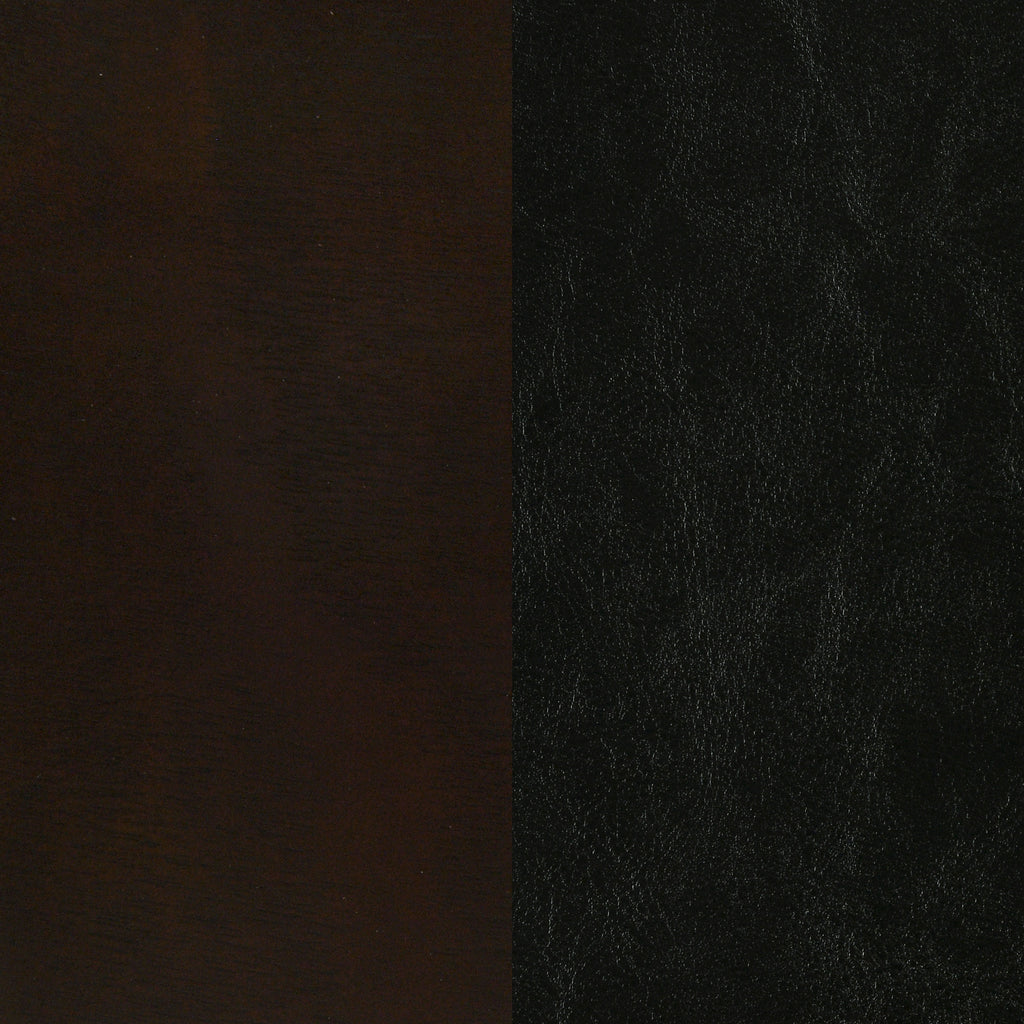 A timeless centerpiece, this panel bed blends mid-century inspiration with modern sophistication. Crafted with clean lines and a bold silhouette, it showcases a rich cappuccino wood finish for warmth and depth. The headboard and footboard feature black padded leatherette panels with vertical channel detailing, offering both comfort and refined texture. Constructed from rubberwood, veneer, and engineered wood, this bed delivers enduring strength and style that enhances any bedroom retreat._x005F_x000D_ Key Features: • Queen panel bed with bold profile and mid-century modern flair • Rich cappuccino wood finish complements black padded upholstery • Headboard and footboard feature vertical channel stitch detailing • Leatherette surface adds soft texture and easy-care durability • Crafted from engineered wood, rubberwood, and okume veneer • Creates a refined focal point for any master or guest bedroom