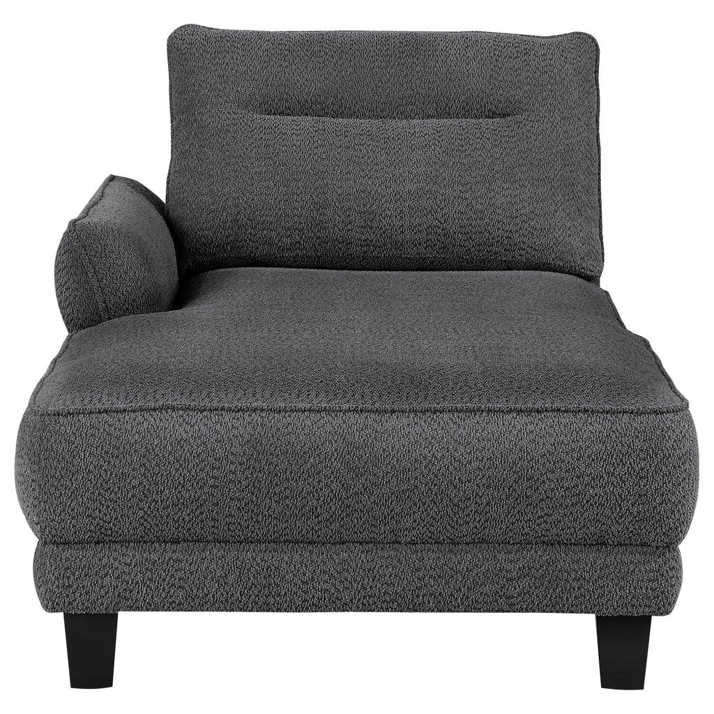 Experience ultimate comfort with this modern two-piece sofa chaise, available in grey or white. The fuzzy teddy bear-like textured fabric upholstery creates a cozy atmosphere. The softly rounded arms and welt framed reversible back cushions add a touch of sophistication. With attached welt-accented boxed seats and solid wood tapered legs, this sectional ensures a well-kept appearance and sturdy foundation. Key Features: • Plush teddy bear-like fabric upholstery for ultimate comfort • Softly rounded arms and welt framed reversible back cushions for sophistication • Attached welt-accented boxed seats and solid wood tapered legs for a well-kept appearance • Available in grey or white to match any décor • Sturdy foundation for lasting use