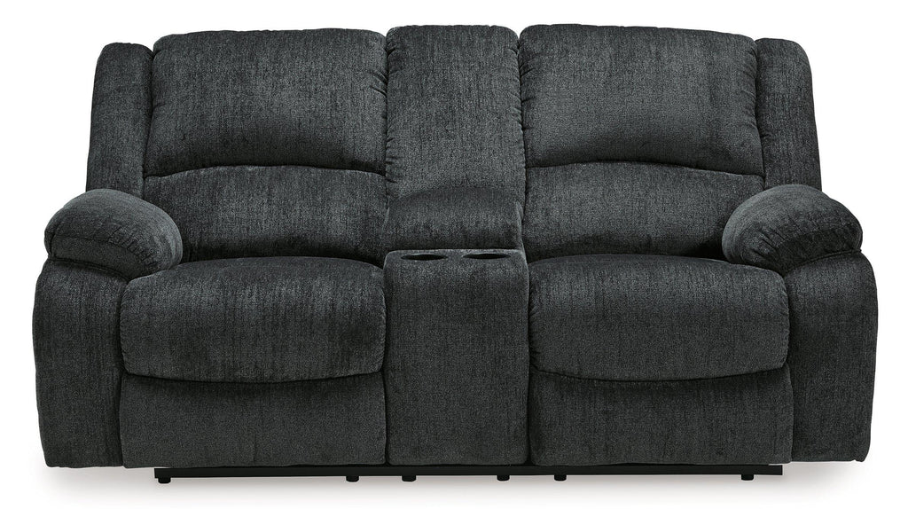 Built for luxury, this power reclining loveseat with center console lets you kick back in reliable style. The thick, softly textured chenille upholstery provides a comfy surface on which to lounge. With bustle back construction and thickly cushioned armrests, this piece gives you the dependable, powered support you need to unwind with the convenience of the center console to ease your evening.