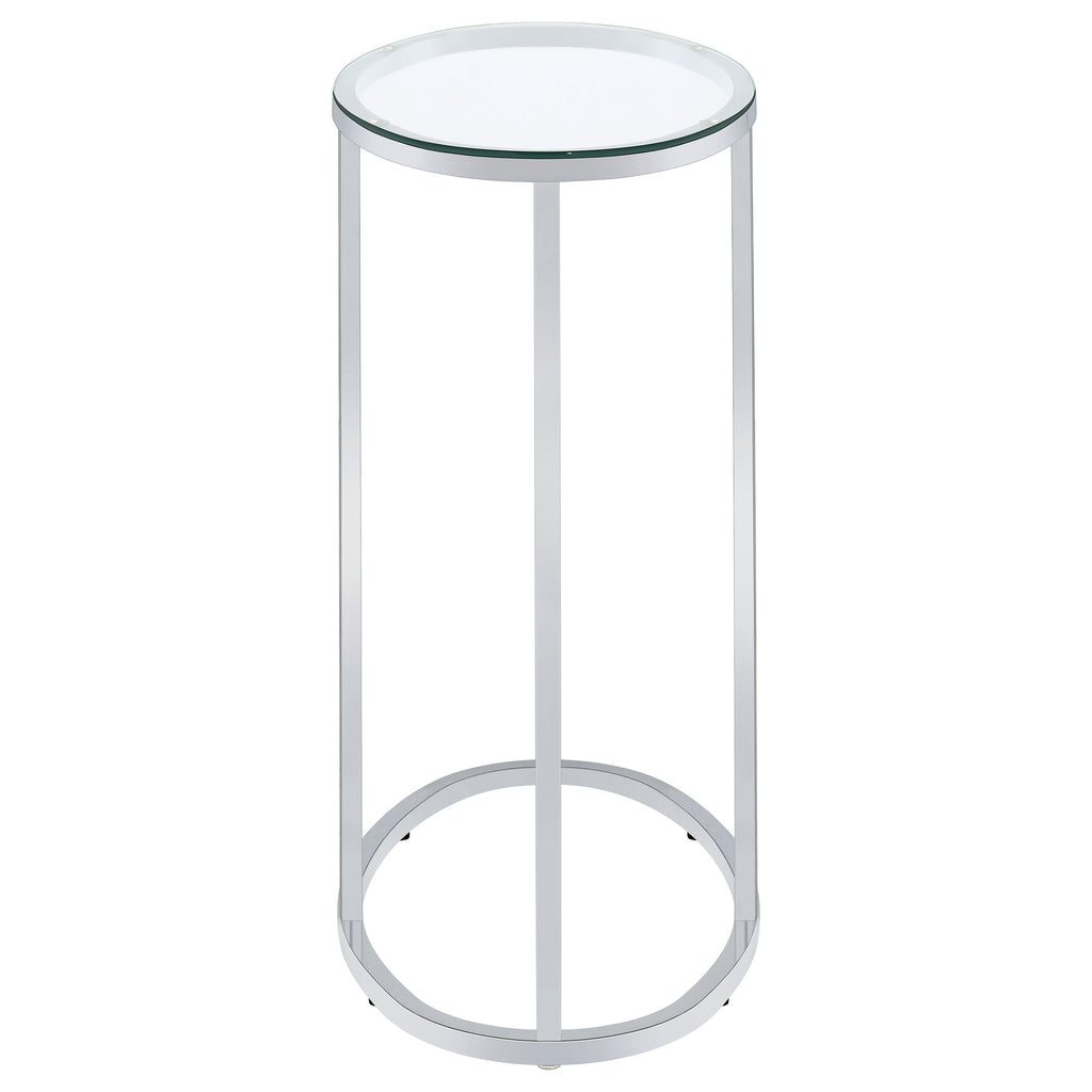 This oval side table features a sleek, modern design with a clear tempered glass top that offers both durability and elegance. Its minimalist metal frame, electroplated in chrome, provides a polished, reflective finish that enhances its contemporary aesthetic. Designed for versatility, this c-table is perfect for small spaces or as a functional accent piece next to a sofa or chair, adding a touch of style and practicality to your living room. Key Features: • Oval side table with a clear tempered glass top for a sleek, durable surface • Electroplated chrome frame delivers a polished, reflective finish • Minimalist metal frame design enhances contemporary interiors • Compact and lightweight, ideal as a versatile c-table for small spaces • Open frame provides easy access for use beside sofas or chairs • Perfect for functional use or as a modern accent piece in any room