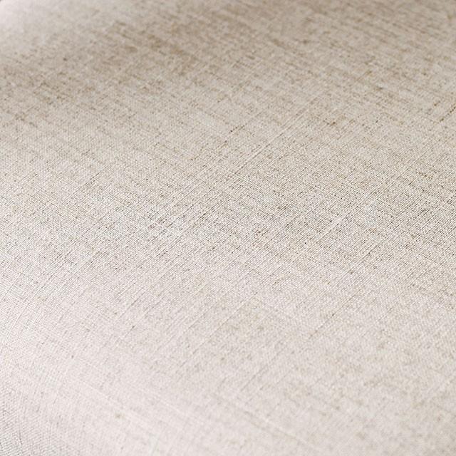 Simplistic in design but high in style, this transitional style counter height set features clean, linear lines with cozy brown cherry hues. The ivory linen seats are lined with nailhead trim for a rustic flair that brings the farmhouse in. The pedestal base and corner rivet details complete this homey design for a look that will prove to be a hit in any dining setting.