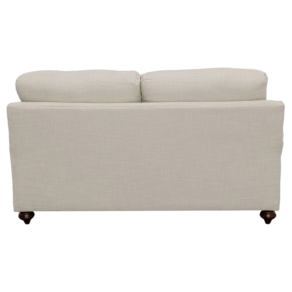 Taking a page from cottage-style farmhouse ambiance, this two-piece sofa and loveseat set wins over family and guests with its elegant simplicity. With tailored English arms and turned legs offering a contrasting espresso finish, each piece of this set shines with a light grey linen-like upholstered cover. Reversible cushions with T-cushions on each end create comfort and stay in shape, as a solid wood frame with a sinuous spring deck sets the stage for durability. Attached back cushions remain stationary to prevent shifting. Enjoy the designer look of seven accent pillows with varying blue print covers. Key Features: • Bring LOVE to your living area with this sophisticated farmhouse collection • Tailored English arms • Turned legs in espresso • No rearranging required with easy to maintain attached back cushions • Extend the life of your upholstery set with reversible seat cushions