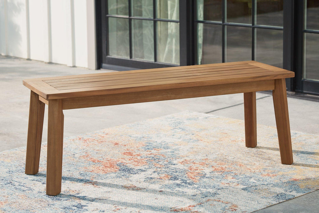 There's no need to be stuck inside when the weather is perfect. Enjoy an alfresco gathering with this outdoor bench. Made of solid acacia wood, this bench is built to keep its looks with a slatted style that sheds rainwater. You'll love soaking in the scenery from here.