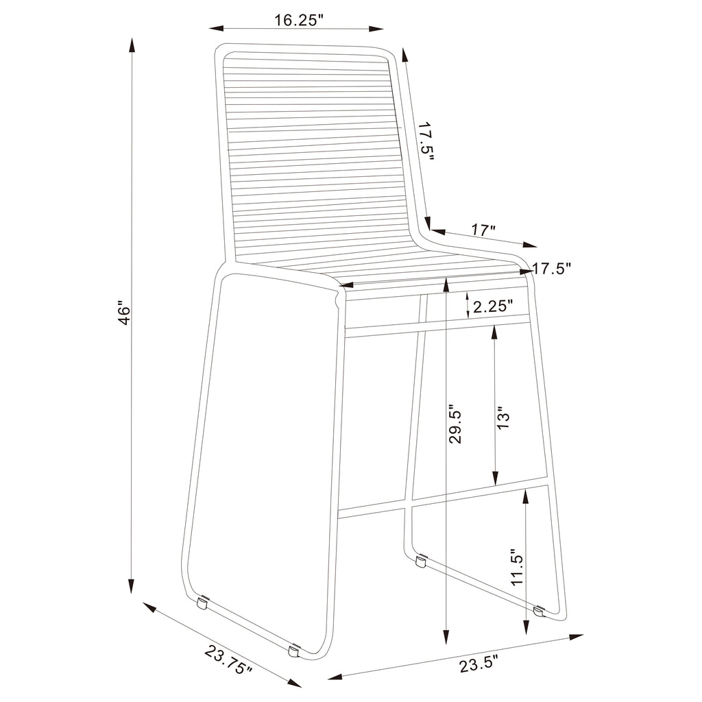 Create visual texture with this contemporary rope woven stool. A tall and slender metal frame in a gunmetal finish, wrapped in charcoal tone rope around the backrest and seat, offer a restful spot for family and guests at elevated dining areas. The metal frame offers an open, airy feel with its slim seat and angled legs, and extra support with a lower footrest. With a sled-style base, this stool slides gracefully up to a bar top or counter height tabletop for drinks, meals and more. Lastly, a dark hue throughout creates a dramatic, natural vibe for modern farmhouse and boho-inspired homes. Key Features: • Create a restful spot with a tall and slender metal frame in a gunmetal finish, wrapped in charcoal tone rope around the backrest and seat • Metal frame offers an open, airy feel with its slim seat and angled legs, plus extra support with a lower footrest • Sled-style base slides gracefully up to a bar top or counter height tabletop for drinks, meals and more • Dark hue throughout creates a dramatic, natural vibe for modern farmhouse and boho-inspired homes • Visual texture with this contemporary rope woven stool