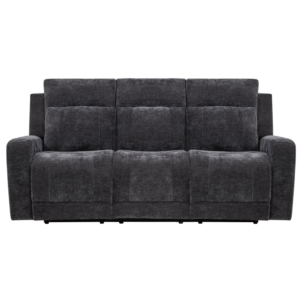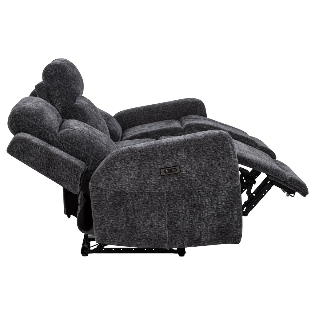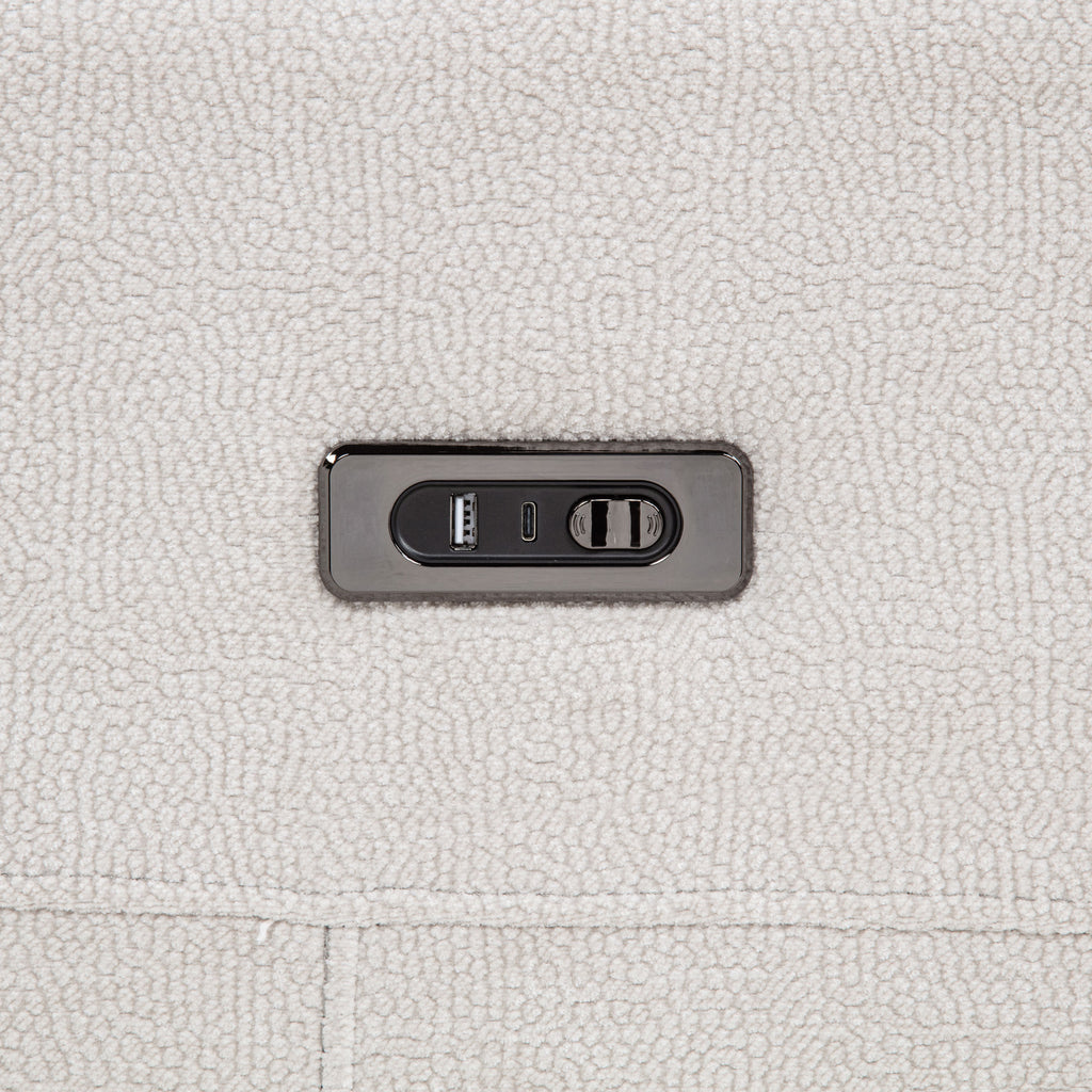 Sink into the soft embrace of this chenille power reclining sofa, where comfort meets thoughtful design. Smooth dual recliners respond at your touch. Built-in USB-A and USB-C ports keep your devices charged as you relax. Wrapped in richly textured chenille and supported by a durable metal frame, this sofa brings modern ease and everyday indulgence to your living space. Key Features: • Dual recliners operate via smooth push-button control • Ivory chenille upholstery showcases a soft surface with subtle woven texture • Features a built-in USB-A and USB-C port for dual-device charging convenience • Padded armrests and supportive headrests enhance lounging and relaxation • Durable metal framing ensures strength and lasting structural integrity • Polyester chenille offers a cozy feel with easy-care, low-maintenance appeal