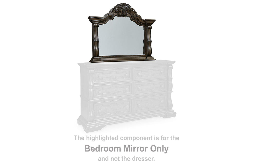 From the ornamental appliques to the large scale, this dresser and mirror make a bold statement. Spacious drawers store your clothes, jewelry and more in stunning style. The look is timeless. The feel? Right at home.