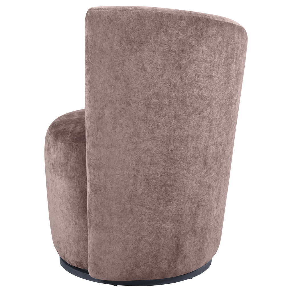 This accent chair’s sculptural silhouette and plush velvet upholstery create a luxurious presence in your living space. Designed with swivel functionality, it allows effortless 360-degree rotation, making it perfect for conversation areas or cozy reading nooks. Its curved backrest and softly cushioned seat deliver indulgent comfort, while the neutral hue ensures seamless integration into various décor Key Features: • Modern accent chair featuring a smooth swivel base • Plush dove grey velvet upholstery lends a rich, tactile appeal • Curved backrest enhances both support and style • Neutral tone complements diverse interior palettes • Ideal for conversation corners, lounges, or reading spaces • Offers a refined, sculptural touch to contemporary décor
