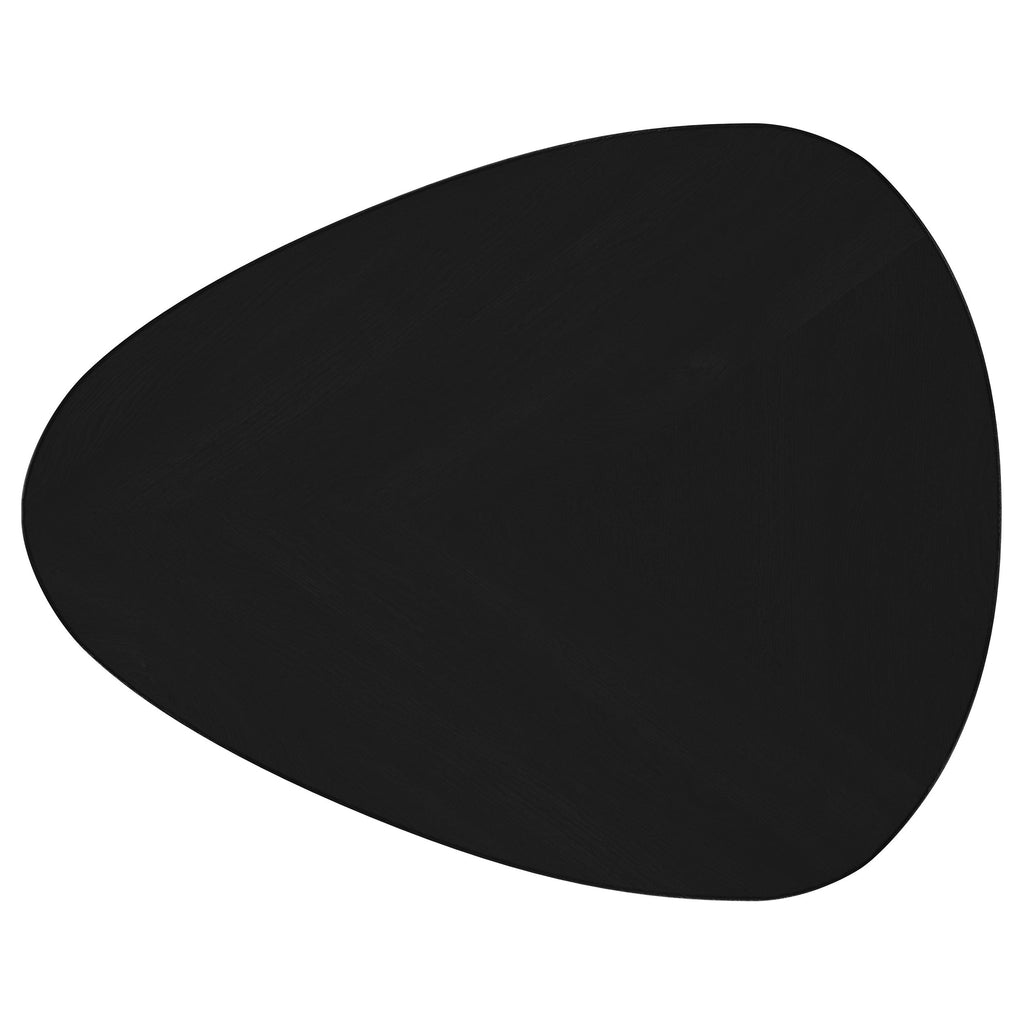 Introduce a modern flair to your living room or den with this sleek wooden end table. Finely crafted from solid mango wood, its deep black finish enhances its timeless elegance. The triangular tabletop features rounded corners, lending a softened, contemporary vibe. Supported by three tapering, splayed legs, the design exudes a light and airy feel. Perfect for flanking a sofa or armchair, this side table is ideal for showcasing a reading lamp or decorative accents. Key Features: • Sleek and modern triangular end table with rounded corners • Solid mango wood top in a deep, smooth black finish • Tapering, splayed legs provide sturdy yet lightweight support • Perfectly sized to complement sofas or accent seating areas • Handcrafted design ensures unique character and craftsmanship • Great for displaying lamps, vases, or decorative accents