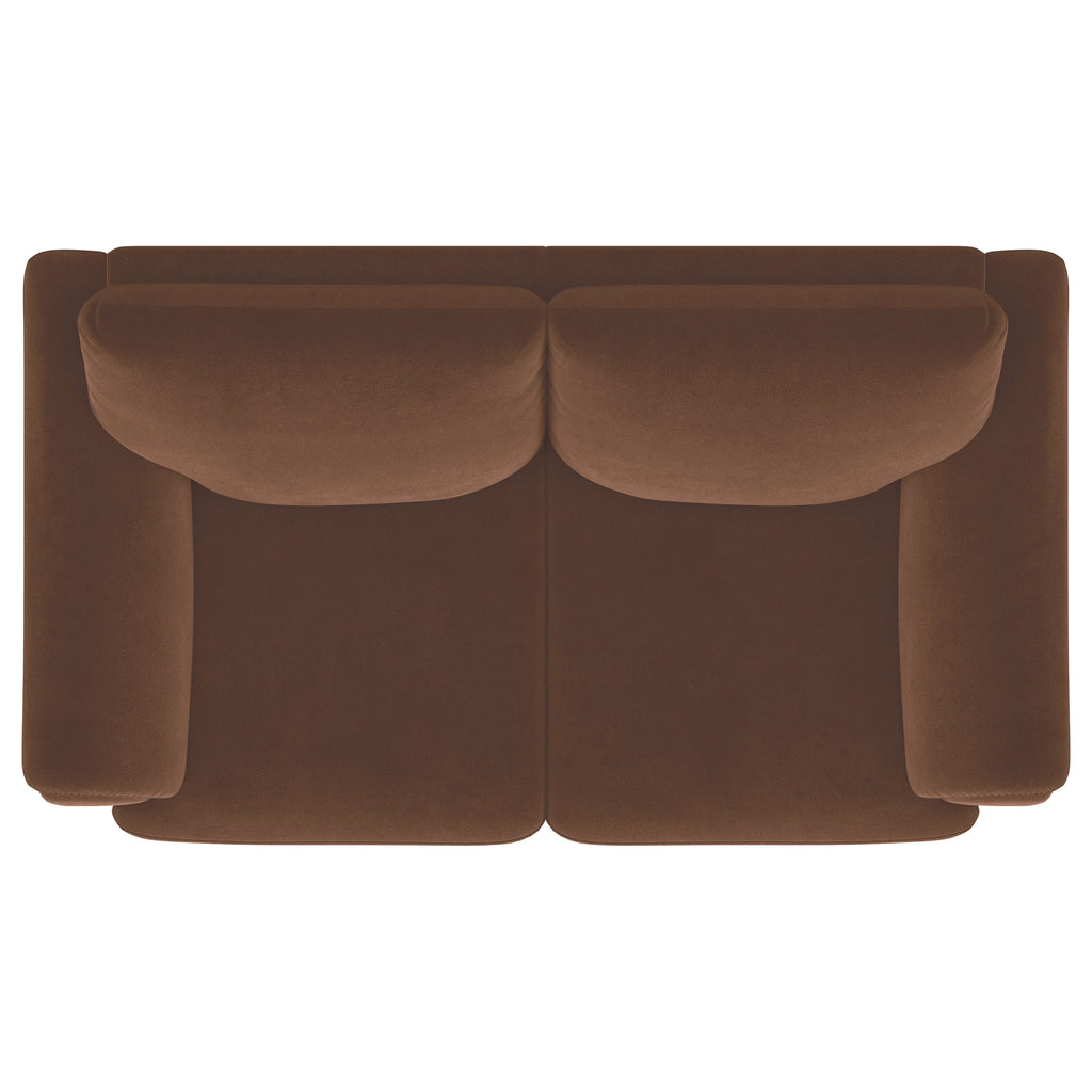 Add a touch of retro charm to your living space with this stylish loveseat. Upholstered in rust woven fabric, it combines plush foam seat cushions and curved tufted arms for a cozy and supportive feel. Built with a fully encased engineered wood frame and sinuous spring seating, this loveseat offers both durability and comfort. Solid wood tapered legs in an espresso finish provide a sturdy foundation, making this piece a functional and elegant addition to any room. Key Features: • Retro-inspired loveseat with curved tufted arms • Rust woven fabric upholstery for timeless style • Fully encased engineered wood frame for stability • Sinuous spring seating with plush foam seat cushions • Attached seat cushions and removable back cushions • Solid wood legs in espresso finish for sturdy support
