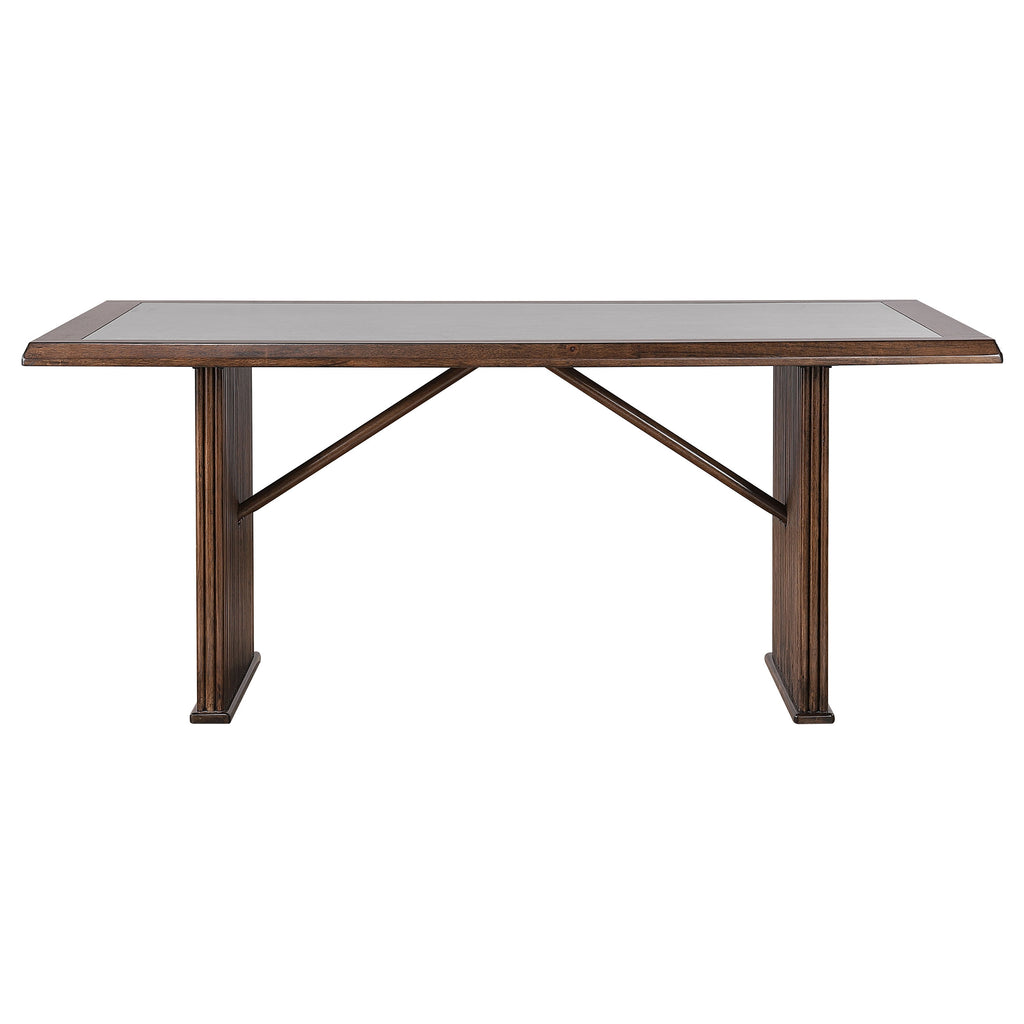 Transform your dining area with this sophisticated dining set, featuring a 72-inch reeded dining table and complementing upholstered side chairs. The table's ceramic top combines elegance and durability, while the reeded base adds texture and timeless appeal. Paired with side chairs upholstered in soft gray fabric, this set ensures both style and comfort. The sturdy rubberwood construction guarantees long-lasting use, making it perfect for family meals or dinner parties. A harmonious blend of form and function, this set elevates any dining space. Key Features: • Dining set includes a 72-inch table and upholstered side chairs • Table features a reeded base and durable ceramic top • Chairs upholstered in soft gray fabric on back and seat for comfort • Table and chair frames crafted from sturdy rubberwood • Spacious table design accommodates various seating arrangements • Elegant design with versatile finishes suits modern or classic interiors