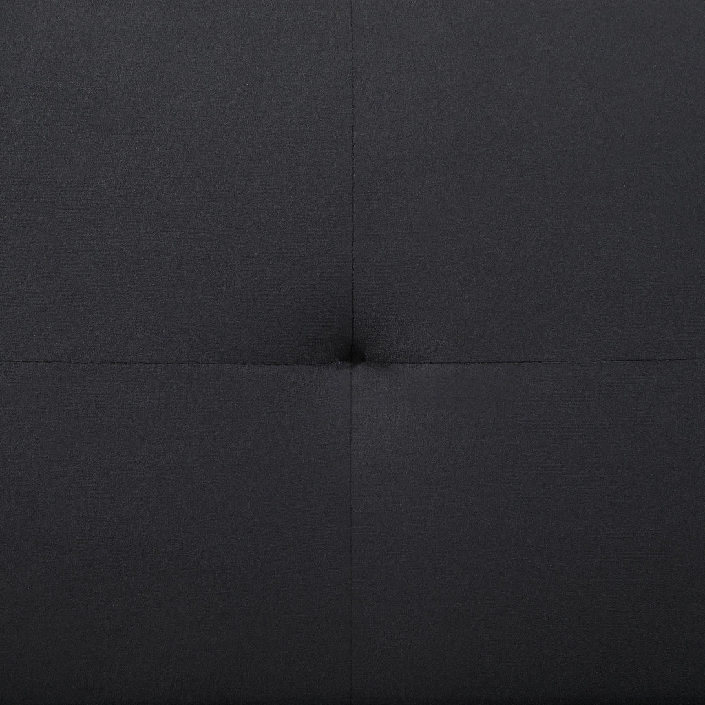 Simple and comfortable, this modern convertible sofa is the perfect solution in a multifunctional living space. By day, it's a sofa, offering excellent comfort and support with a contemporary look. By night, it folds flat to create a perfect bed for guests. The armless design is compact and streamlined, complementing in living rooms, dens, and other spaces within your home. Black fabric is neutral and classic, sure to complement surrounding decor, with linear tufting that adds dimension. Key Features: • Modern armless convertible sofa bed with a sleek, minimalist design • Soft black velvet upholstery provides a luxurious and smooth texture • Sinuous spring seat construction enhances comfort, durability, and support • Biscuit tufting detail adds depth, texture, and a sophisticated touch • Sturdy black-finished wooden legs offer excellent stability and strength • Effortlessly lays flat to transform into a bed, ideal for small spaces