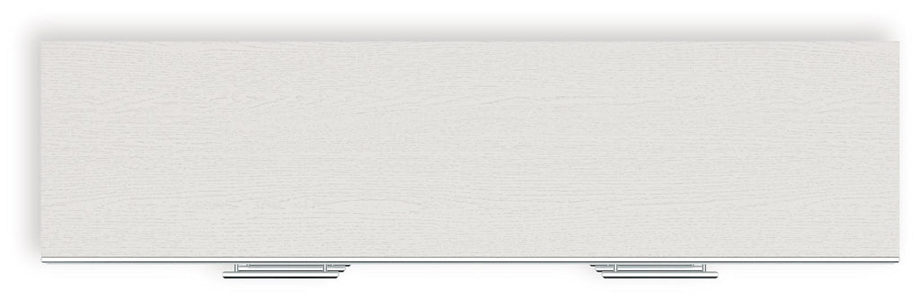 - Matte white finish with subtle replicated wood grain